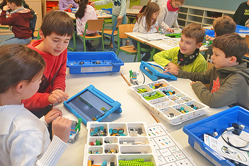 Mit Hilfe früherer Fördergelder wurden nun Baukästen des Folgemodells von „Lego Education WeDo 2.0“, nämlich „Lego Education Spike Essential“ angeschafft. Dazu kamen neue Baukästen „Robo Wunderkind“ mit Erweiterungsbausteinen. Auch ein Transportwagen zur Aufbewahrung der Kästen wurde angeschafft. Zusätzlich konnte im Rahmen früherer Förderungen noch der Bestand an Tablets aufgestockt werden, um ein effektives Arbeiten zu gewährleisten.